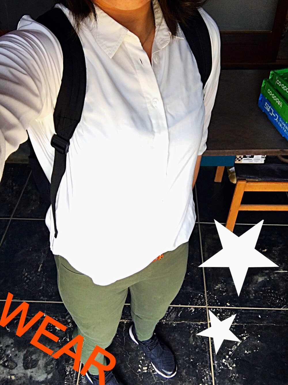 なんかUNIQLOのCMの人みたいな…(笑) でもこのレギンスパンツめっちゃ履きやすくて好き! 仕事のユニフォーム、これの黒です(笑)