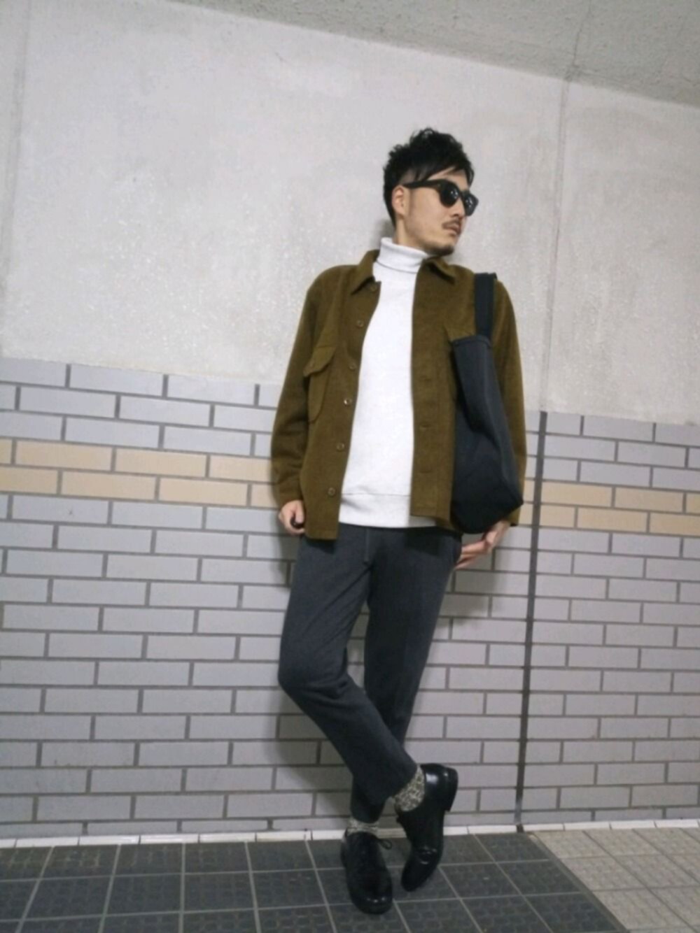ユニクロUのフリースシャツジャケットを使用したコーデその2。 GU のフェイクレザーシューズを使用してきれいめコーデにしてみました。