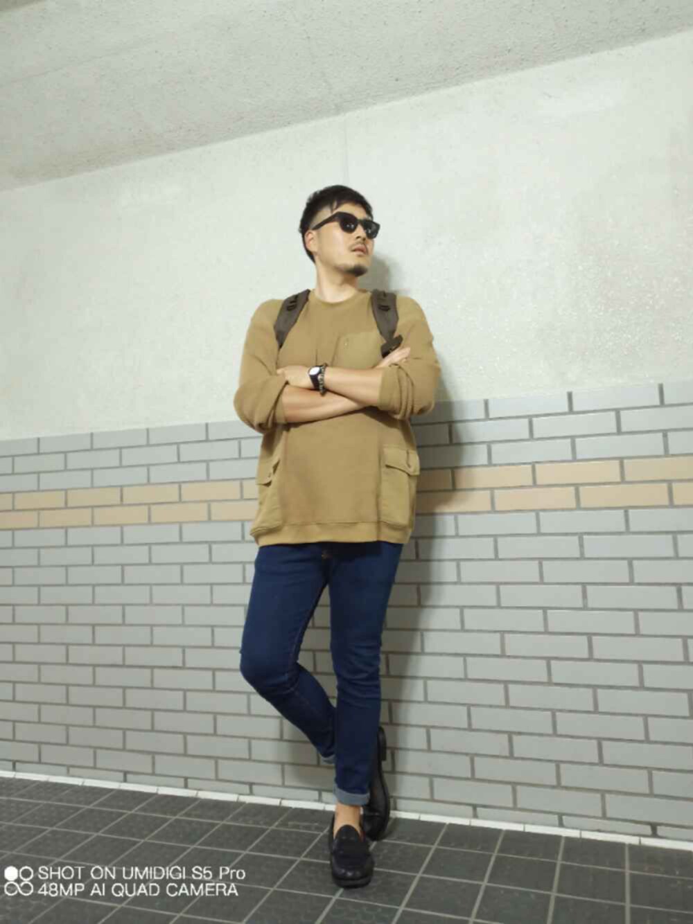 ワークマンの金額が高い方のワッフル T シャツをを使用したコーデ。 と言っても1500円…。