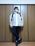しまむらのコーデュロイ中綿ジャケットを使用したコーデ。 革靴は GU の リアルレザー U チップシューズ…。