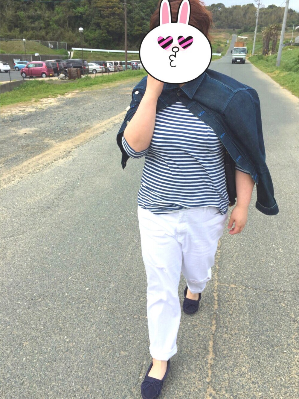 ただのカジュアル ジャケットは彼のを借りたら 風が強くて一番上のボタン閉めるという 作戦をとりました 結果めっちゃ強いやつみたいになりました 笑