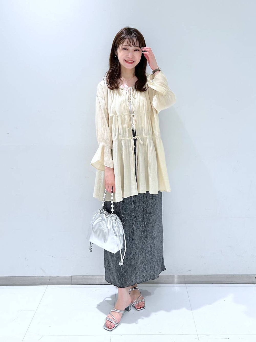 閲覧いただきありがとうございます(^O^) ▷ ブラウス ( Fサイズ ) リボンが並んだデザインが とても可愛らしいブラウス ♡ サラッとした肌触りで着心地抜群 ◎ おしりくらいの丈なので体型カバーも バッチリ出来ます^^! 透けすぎないシアー感なので 大人女性の方にも着て頂きたいです♩ ▷ スカート ( Fサイズ ) プリーツ加工が施されたスカート ♡ 表面にやや光沢感があってお洒落度up! 薄手なので夏でも涼しく着れそうです^^ ウエストもゴムなので楽ちんですよ♩ 参考になれば嬉しいです .. ♡ instagram →