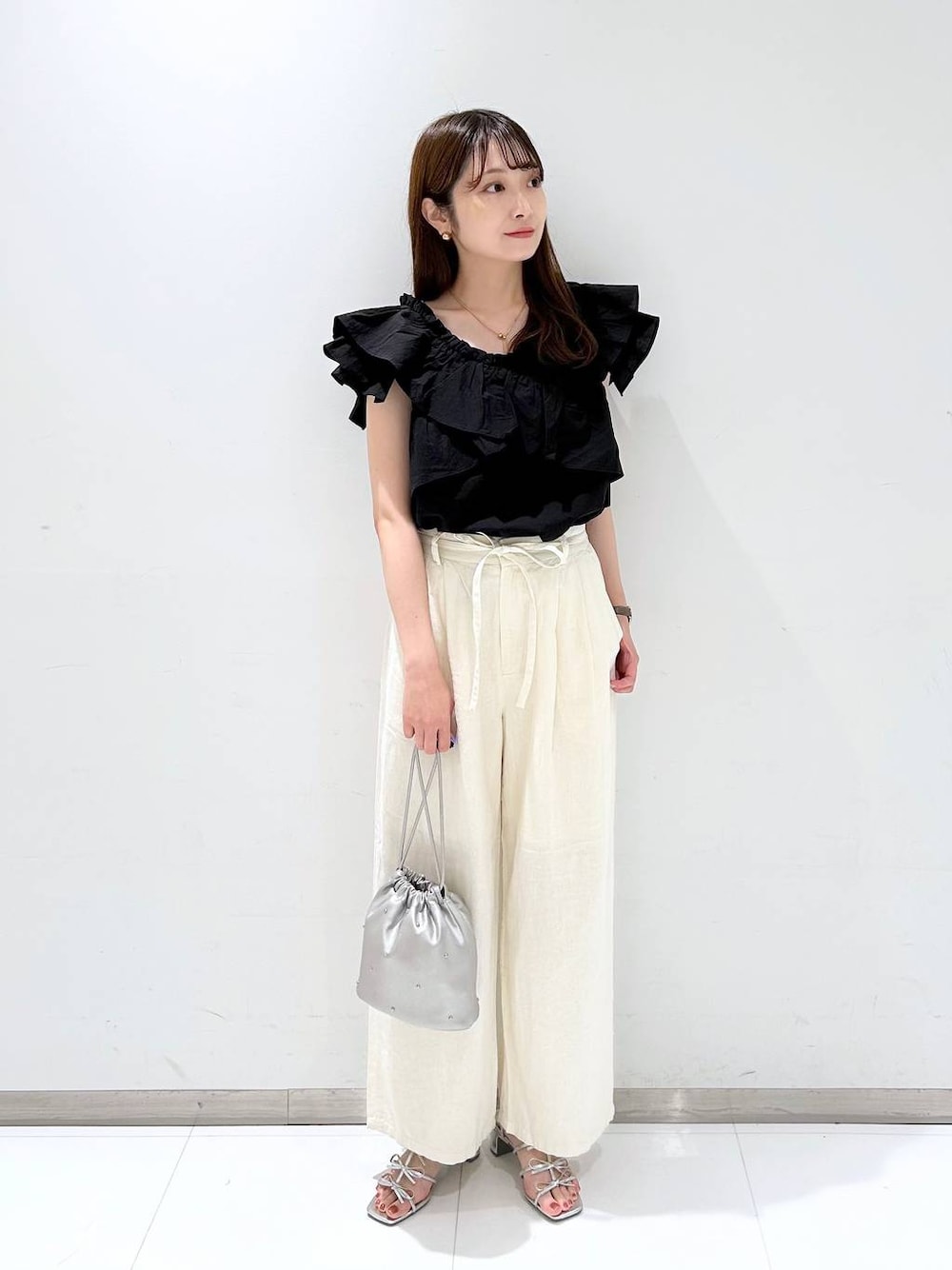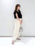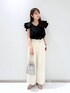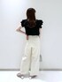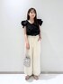 閲覧いただきありがとうございます(^O^) ▷ ブラウス ( Fサイズ ) クロスになったフリルがポイントのブラウス ♡ 肩が隠れるくらいの袖丈なので 正面から見た時に二の腕がすっきりと見えます! 肌触りの良い素材感なので着心地も抜群です◎ 肩までフリルを落としてオフショルとしても 着れる万能なブラウスです!! ▷ ワイドパンツ ( Mサイズ ) ワイドストレートシルエットで 足にまとわりつくことがなく とても履き心地が良いパンツです ♡ 付属で同素材のベルトが付いておりますが ご自身のベルトに付け替えても頂けます! 着丈は私の身長で足首が隠れる長さです。 参考になれば嬉しいです .. ♡ instagram →
