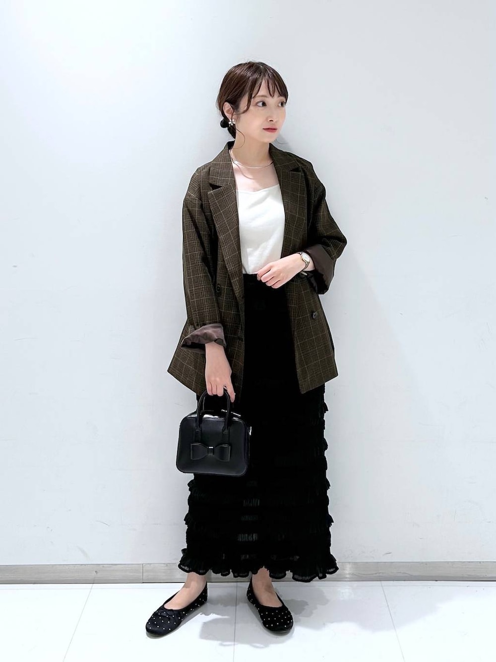 閲覧いただきありがとうございます(^O^) ▷ ジャケット ( Fサイズ ) オーバーサイズのテーラードジャケット ♡ 店頭でも大大大人気です^^✨ 着丈はおしりが隠れるくらいの長さで 袖丈は手の甲まで隠れるくらいです! なので2回ほどロールアップしました ◎ 内側は裏地付きなので着脱もしやすいですよ! ▷ スカート ( Fサイズ ) フリルデザインがポイントのタイトスカート ♡ 全体的に伸縮性に優れているので とにかく履き心地が良い!楽ちんです!! サラッとした生地なので涼しいですし タイツ合わせだと秋冬も履けそうです^^ ウエストもゴムなので快適ですよ ◎ 参考になれば嬉しいです .. ♡ instagram →