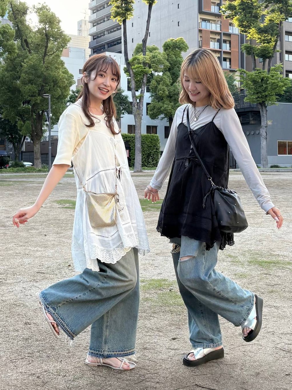 閲覧いただきありがとうございます(^O^) 右 : 160cm / 骨格ストレート 左 : 160cm / 骨格ウェーブ 人気のキャミチュニックで シミラールックコーデ!!🤍🖤 友達同士で揃えてもカワイイです^^ 参考になれば嬉しいです .. ♡ instagram →