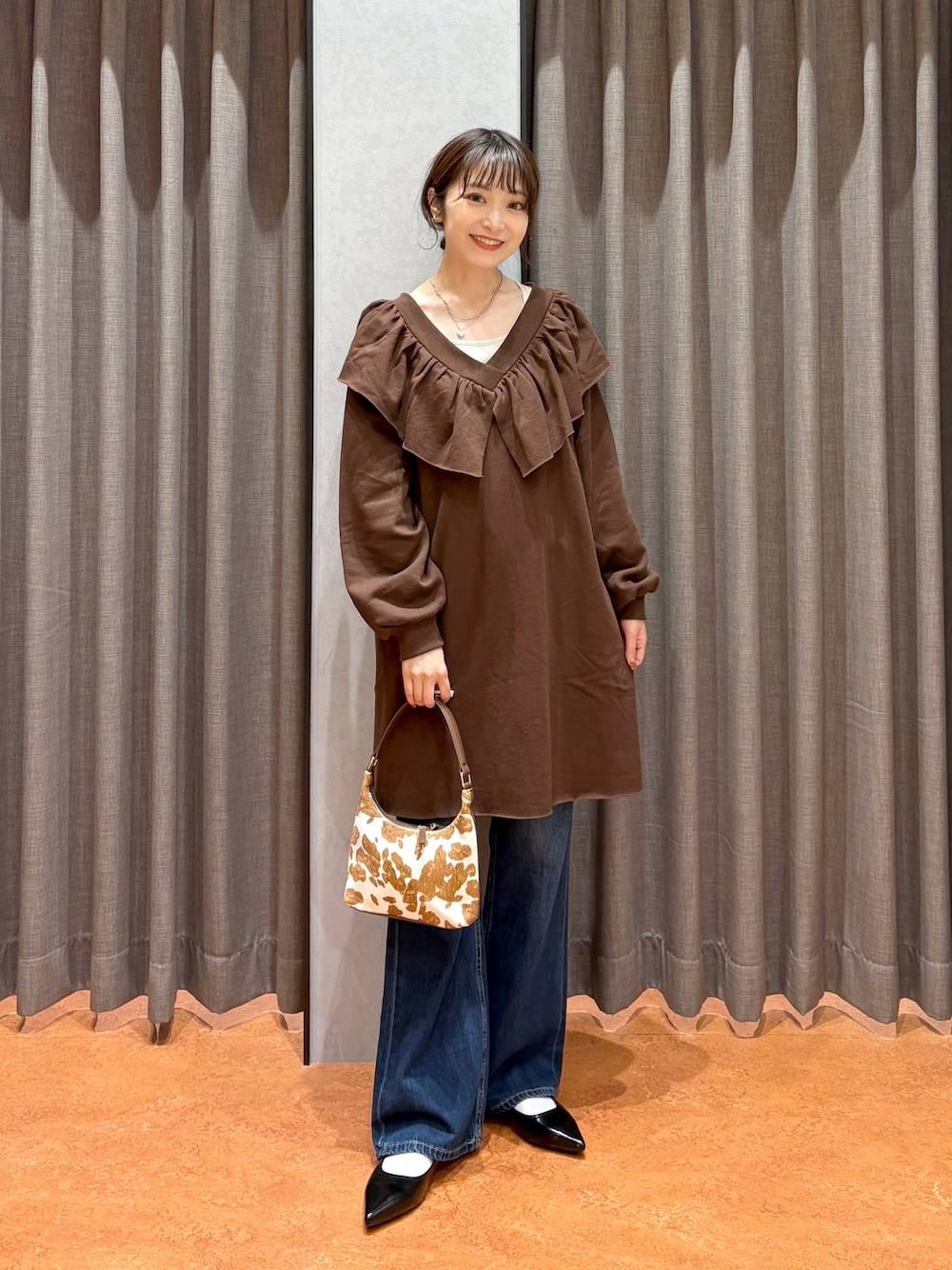 閲覧いただきありがとうございます(^O^) ▷ デニムパンツ ( Mサイズ ) とにかく美シルエット!!!なデニム✨ 太もも部分もピチっとしすぎなくて とても履き心地が良いです◎ 膝から下はゆるやかに広がってくれます! デザインもシンプルなので通年着やすく 流行関係なく履けるところもおすすめ^^ ▷ ワンピース ( Fサイズ ) 襟まわりの大きめのフリルがポイントのワンピース ♡ 前後2wayで着用可能です^^! Aラインシルエットに広がるので 体型カバーもしやすいです◎ パンツとのレイヤードでチュニックっぽく 着るのが個人的にはおすすめです✨ 参考になれば嬉しいです .. ♩
