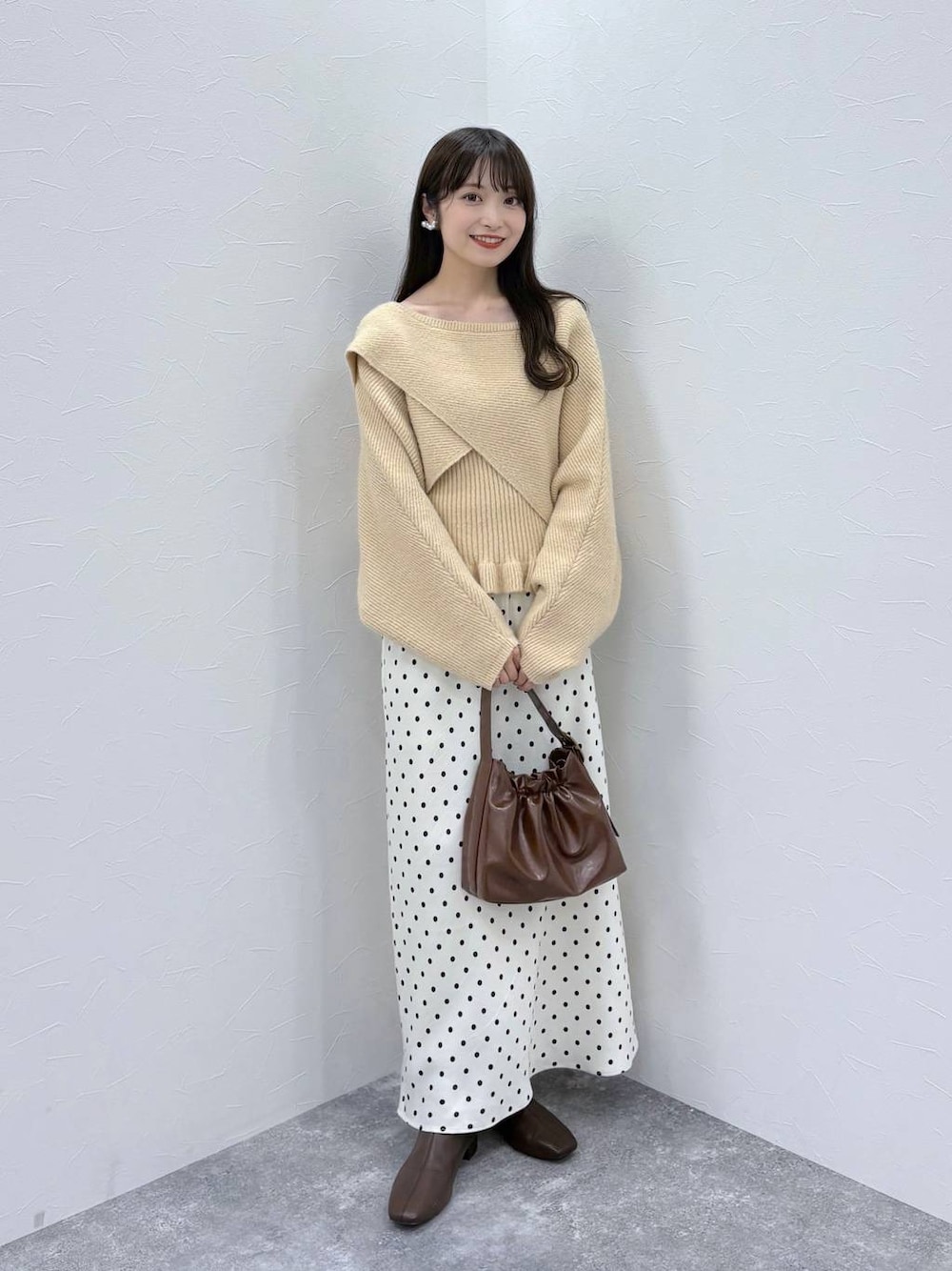 閲覧いただきありがとうございます(^O^) ▷ スカート ( Sサイズ ) サテン生地のロングスカート ♡ Sサイズを折らずにおへそ位置で 履いて写真くらいの長さです。 かかとはしっかりと出ますが 足首は覆われるくらいの長さです◎ ▷ ニット ( Fサイズ ) 裾フリルのキャミソールと ショート丈のボレロがセットになった 着回しのきくニットです ♡ もちもちな肌触りがとにかく気持ち良くて チクチク感も気にせずに着用出来ます ◎ 参考になれば嬉しいです .. ♡ instagram →