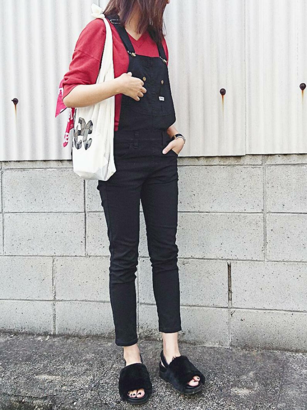 \\Thank you…♡,save,comment,follow// 【Lee】 HERITAGE LITE スキニー オーバーオール ・ブラック ・着用サイズ…S 黒と赤の2色でまとめました。 まだまだ暑いですが気持ちだけ秋色を🍁 季節問わず使えるスキニーオーバーオール 黒だと更に万能に使えます! メッシュバッグとファーサンダルって 季節感、、完全に矛盾してますね…😅 【Instagram⇨may153may】