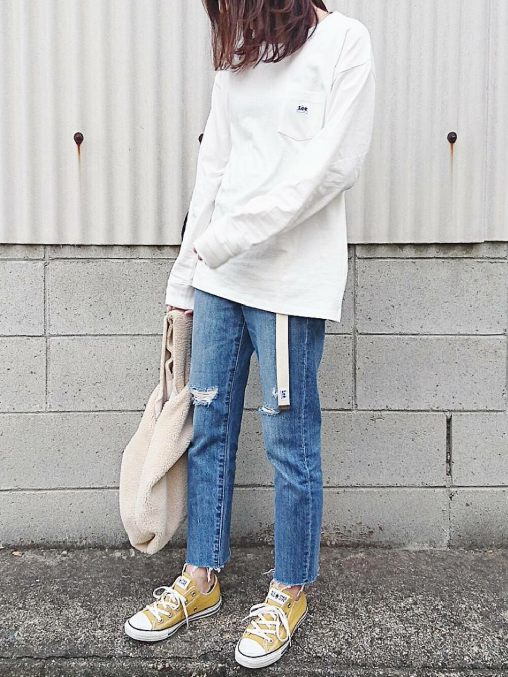 \\Thank you…♡,save,comment,follow// 【Lee】 ポケット付きTシャツ 長袖 ・ホワイト ・着用サイズ…S(ユニセックス) シンプルなロンTは使い回ししやすい白を👕 一つ大きめのサイズで ゆったりめに着るのがマイブームです❤ 薄すぎない生地なので 今の時期だと一枚で👌 寒くなってもアウターを着れば けっこう長く使えます! 大きめを選んだので 中にも着込めそうです☺ 丈も長めなので インせずラフに着る❤ 【Instagram⇨may153may】