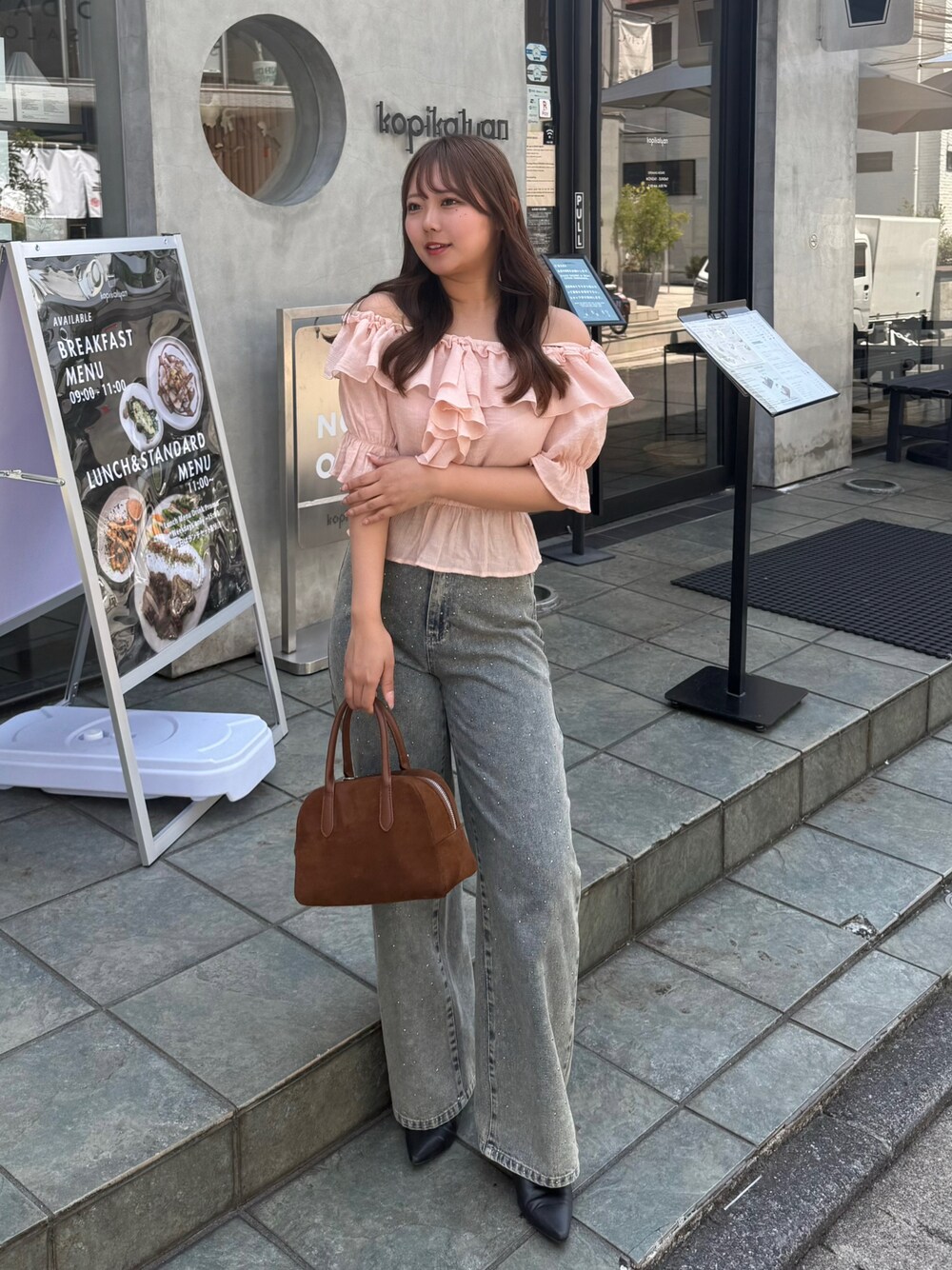 【@_chipi2x】セレクトのブラウスがこれからの季節 大活躍間違いなしの可愛さ✨ フリルたっぷりのデザインが華やかで 着映えするデザイン。 そのまま着るのもオフショルにして 着るのも可愛いです◎ 私はオフショルにしてデニムで合わせた 大人ガーリーなスタイリングに。 ウエストマークもしっかりあるので スタイルアップ効果も◎ こちらのデニムも何回履いたか分からないくらい 履きまわしたストーンデニム。 シンプルなトップスと合わせても 華やかなコーデになるのでぜひおすすめ✨