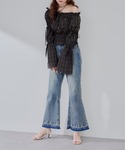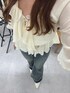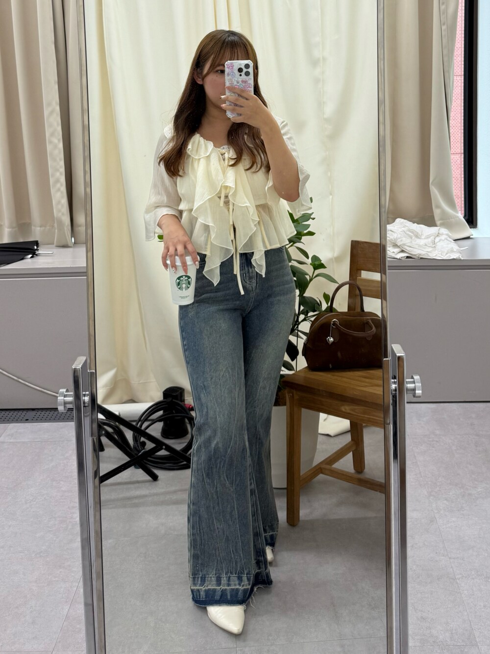 上品なブラウスで揺れ感が可愛いポイント。 フレアデニムと合わせて更に大人可愛いコーデに。 オフィスコーデやディナーコーデなどにぜひ!
