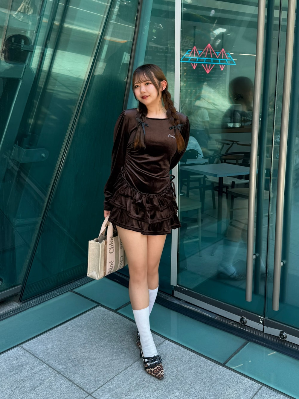 may81o(Remind me and forever 本部)のワンピース「【めい@may_81oセレクト】ベロア裾フリルミニワンピース」を使ったコーディネート