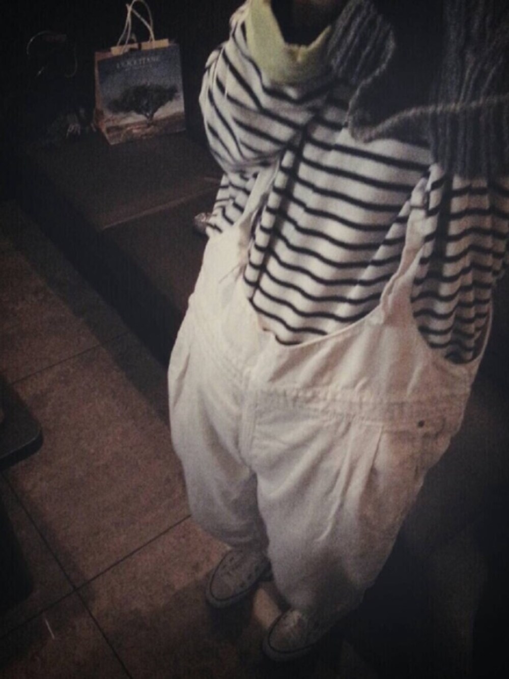 今日じゃないけど いつかのコーデです(´・_・`)w ニット帽にボーダーTに サロペットにコンバース バックパックにポーターです ゆるゆるコーディネートです笑 やる気出します‼︎w