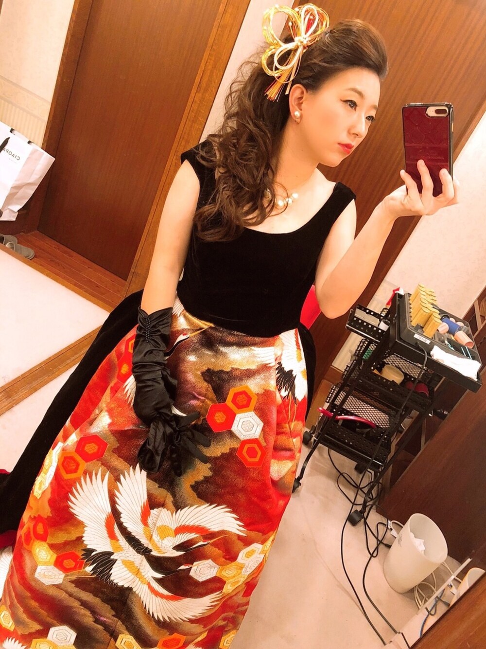 18年前。 高校生の時に作ったウエディングドレスです。 鶴の部分は打掛を使ってます。