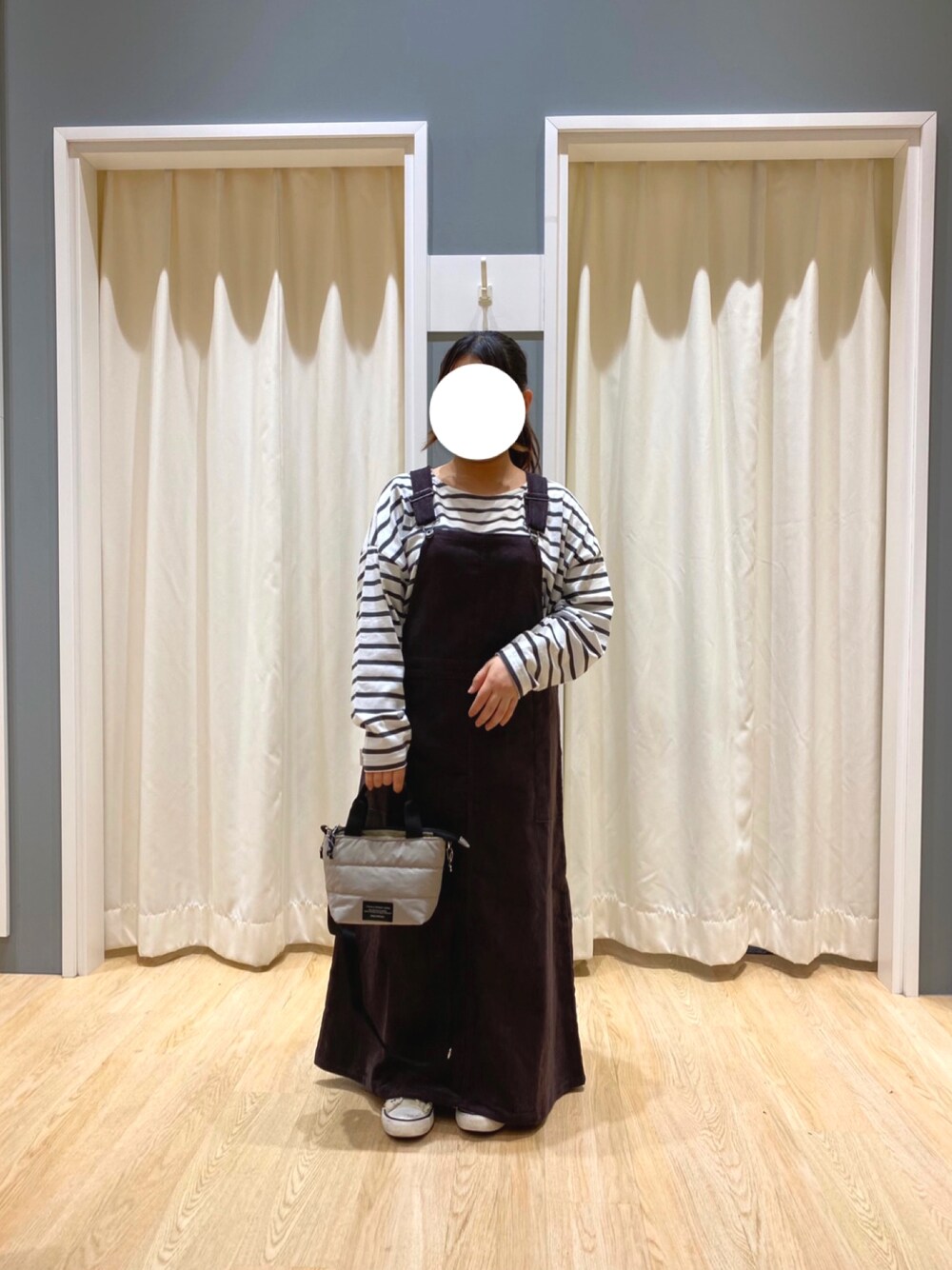 mi!🌷のジャンパースカート「コーデュロイジャンスカ」を使ったコーディネート