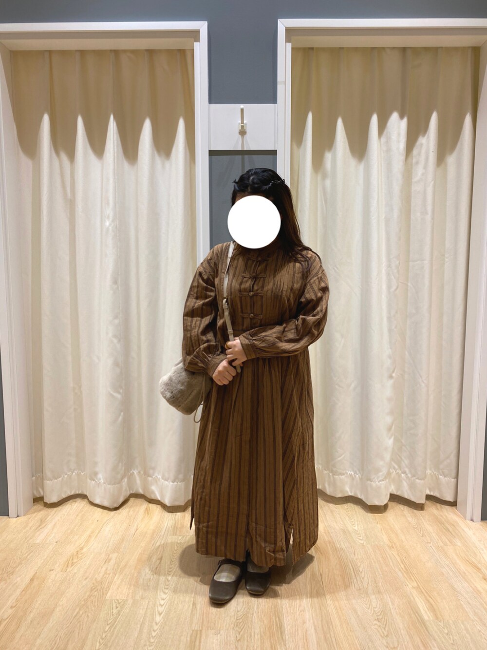 チャイナボタンがポイントとなるワンピースを着用してみました💭 全体的にストライプが入っていてスタイル良く着こなせます☺︎ 145センチの私でも長すぎず丁度良く着られる丈感となっております‼︎ ぜひ店頭でもご覧ください♪