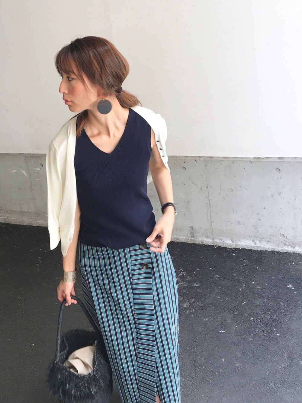 M AYAのカーディガン/ボレロ「・UV7分袖Vネックニットカーディガン」を使ったコーディネート