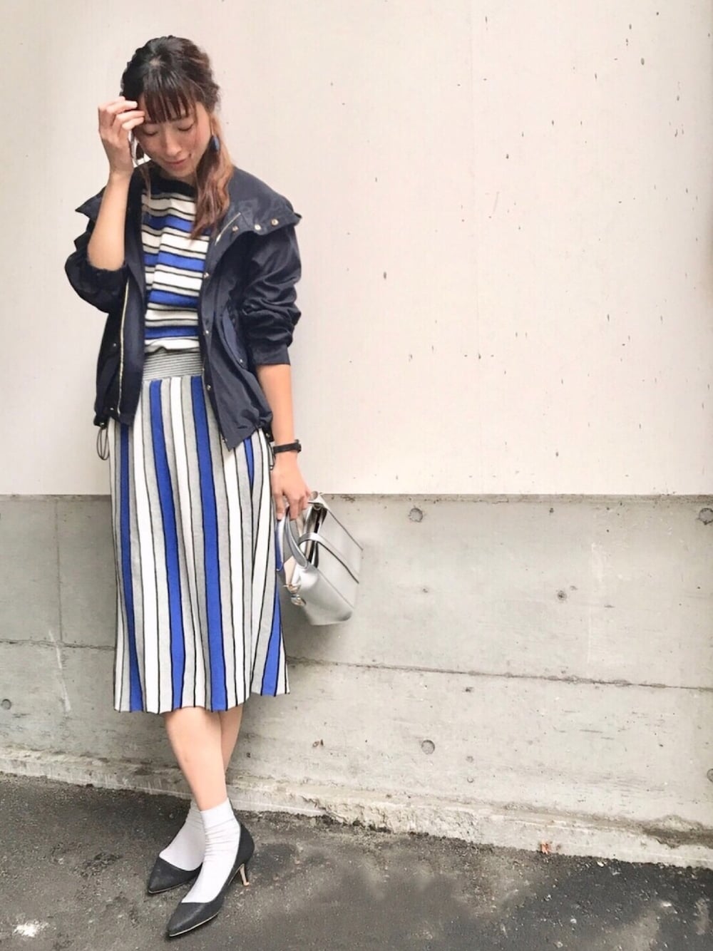 少しツヤのある素材のマウンテンパーカーはカジュアルになりすぎず、スカートにもパンツにも合います✴︎