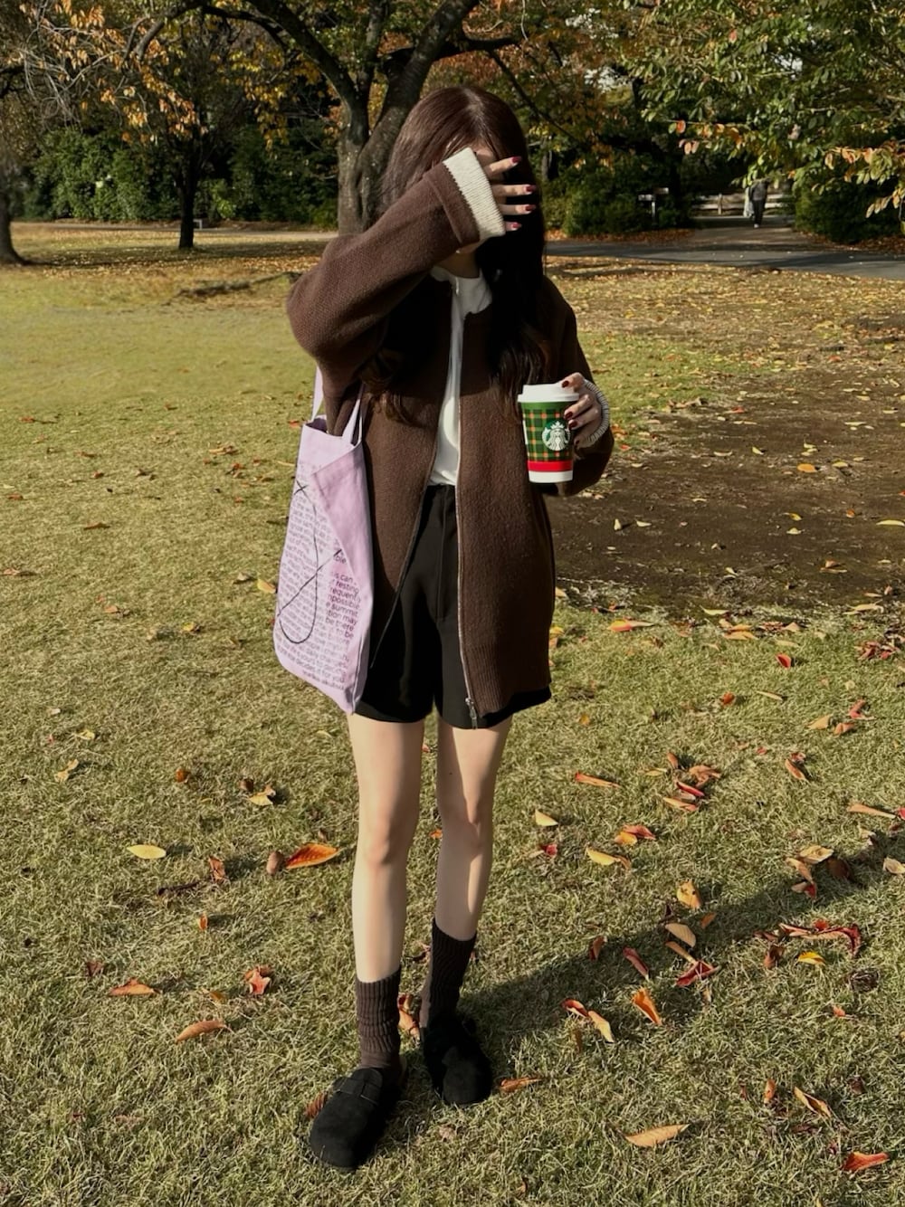 mayaのカーディガン/ボレロ「バイカラー配色ダブルフェイスルーズニットカーディガン」を使ったコーディネート