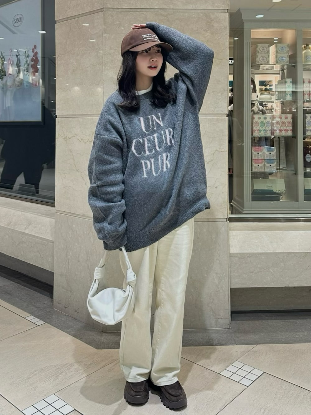 mayaのニット/セーター「ジャガード ロゴBIGニット」を使ったコーディネート
