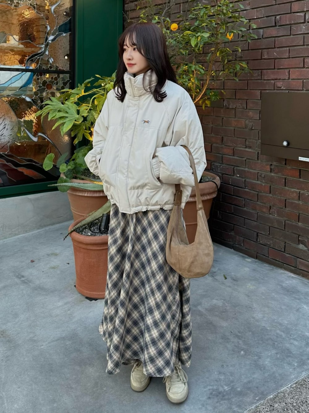 mayaのダウンジャケット/コート「PENNEYS/ペニーズ 別注 <撥水/防風> THE FOX ロゴ ワンポイント刺繍 ドロスト 中綿モンスターブルゾン」を使ったコーディネート