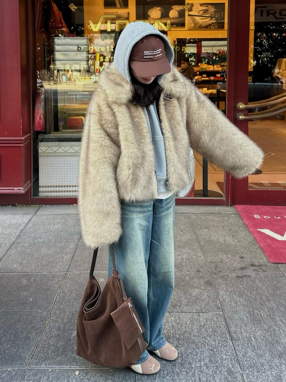 mayaのブルゾン「【WEB限定】ベルトミドルファーコート」を使ったコーディネート