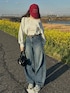 mayaのスウェット「【新色追加】ボリューム袖オフショルダースウェットトップス」を使ったコーディネート