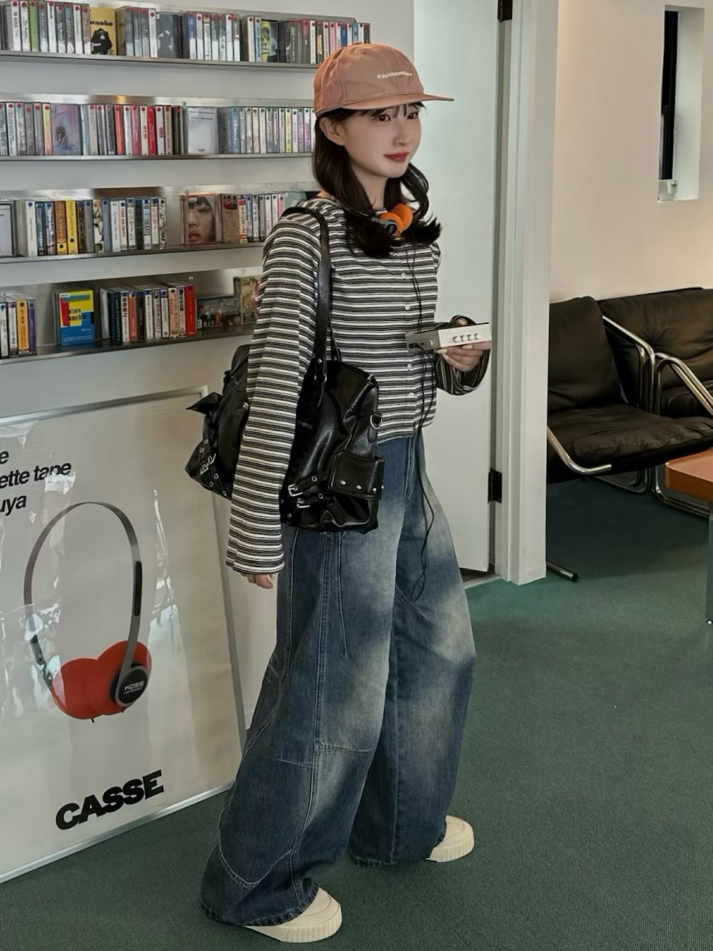 mayaのショルダーバッグ「Chiina / Y2K 大容量合皮レザーショルダーバッグ」を使ったコーディネート