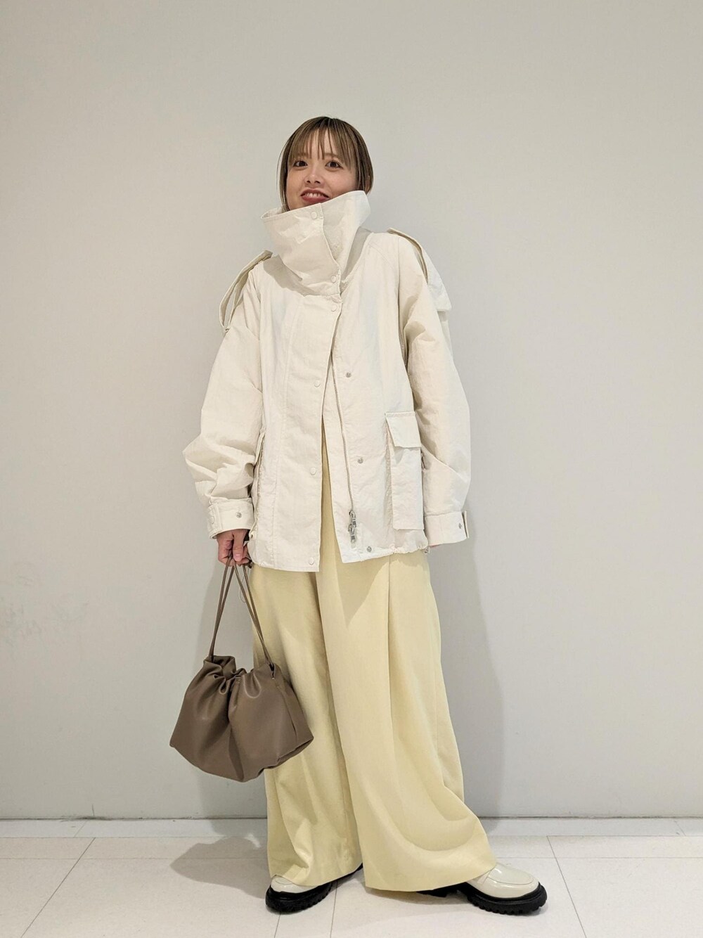 スタンドカラーが可愛い春アウターのご紹介です。 襟元が変化出来て裾も絞れるのでシルエットが変わって可愛いです! シャカシャカとした素材でとても軽く撥水加工もしてあるのが嬉しい○