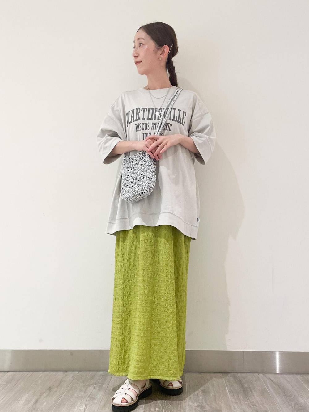 funa(ROPE' PICNIC ゲートウォーク)のショルダーバッグ「メタリックヤーンバケットミニショルダーバッグ」を使ったコーディネート