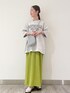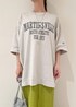 ビッグサイズのロゴTシャツなので、 キャミワンピースの上から重ねて着ています! 綿100%で、生地感もしっかりしているのですごく着やすいおすすめTシャツです◎ カジュアルでスポーティーな印象のTシャツですが、 ワンピースや華やか夏雑貨と合わせて、 大人カジュアルに着こなしてみました☺︎