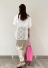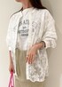 刺繍のロゴが可愛いカジュアルなTシャツを、 白×ベージュのワントーンでまとめて、大人カジュアルに◎ レースの羽織は、プラスするだけでトレンド感の出る おすすめアイテムです☺︎