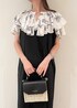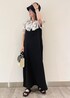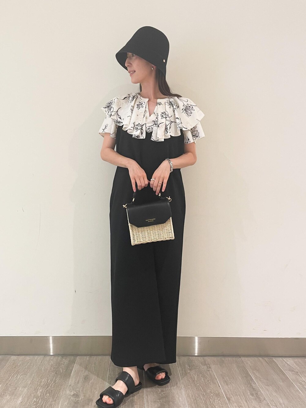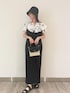 ブラック×ホワイトのモノトーンコーデです。 フリルが可愛いブラウスや、カジュアルなキャミワンピースでも、色を抑えたコーデにすれば大人な印象に! 夏に着るブラックもおすすめです☺︎