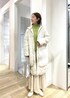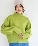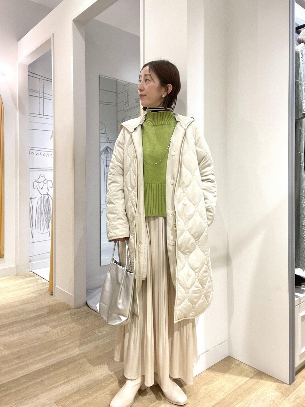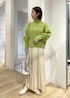 大人気のクロップドニットの新色グリーンを着ています♪ とても鮮やかで目を惹くカラーなので、後のアイテムはホワイトでまとめてみました☺︎