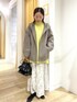 ゆるっとしたオーバーサイズのニットに、シアープリーツマキシスカートを合わせたリラックスコーデです。 楽ちんコーデですが、カラーや柄でメリハリを持たせて、華やかにしてみました☺︎