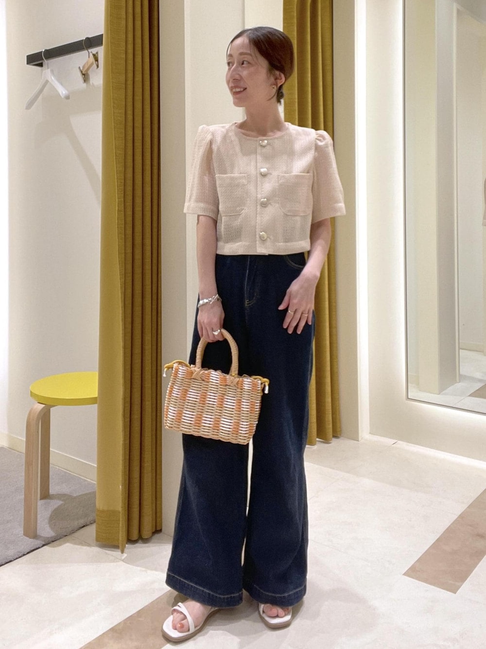 メッシュ素材が夏らしく、これからの季節にも大活躍なカーディジャケット☺︎きちんと見えするデザインなので、デニムと合わせても、大人カジュアルな印象に。 ウエストがすっきり見えて美シルエットのデニムは、着回し抜群で、とっても推しデニムです! ぜひチェックしてみてください☺︎