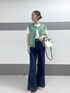 おすすめのサマーツイードジレ✨ 夏も涼しく着れて、大人カジュアルなコーディネートにぴったりです! 鮮やかなグリーンが可愛いです☺︎