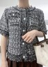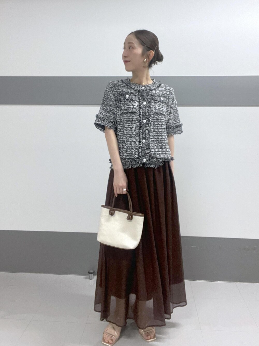 オンオフどちらでも着回せるツィードカーディガン✨ 黒は落ち着いた雰囲気で、シックな印象になります! ブラウンのスカートと合わせて、大人っぽく☺︎