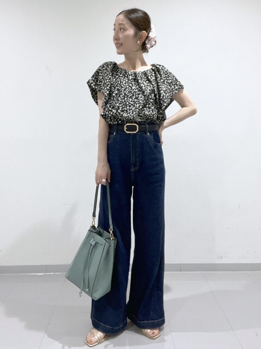 ラッフルフリルの襟が可愛いブラウスを主役に、デニムで甘めカジュアルなコーディネートにしてみました☺︎ 花柄、フリルと甘めなデザインではありますが、 ブラックなら普段カジュアル派な方でも 取り入れやすくておすすめです!