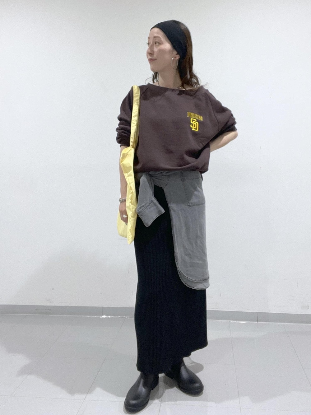 【PEANUTS×MLB COLLECTION】のスウェットとトートバッグを使ったコーディネート✨ スウェットはオフショルにしても着ることができるので、抜け感があり、大人カジュアルな印象に☺︎ この秋はブラウンが気になる〜