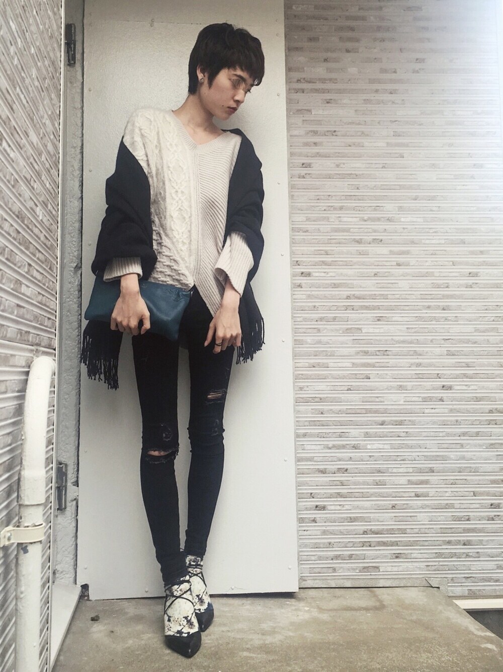キョツのニット/セーター「rn601 - 模様編シャギーニットプルオーバー」を使ったコーディネート