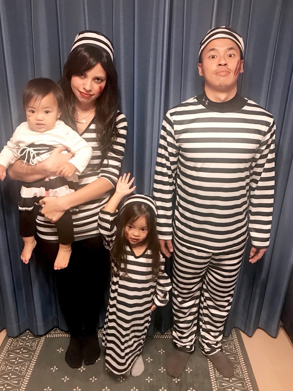 Happy Halloween🎃 ハロウィン当日の今日はホームパーティーをしました🏠 囚人服にメキシカンフード🌮 真顔でファミリーショット👨👩👧👧 なんだかアダムスファミリー感😂🕷 いいね♡・SAVE・フォローありがとうございます💕とっても嬉しいです❤️