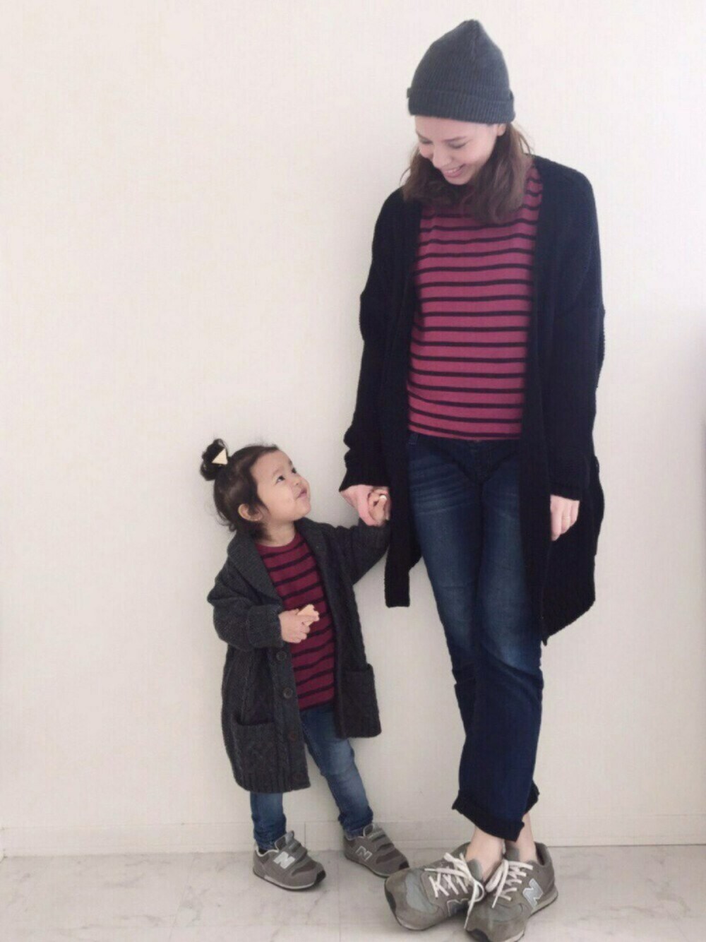 赤ボーダーにロングカーデでリンク💓 Sarahのカーデは110のオーバーサイズをロングカーデ風に🙌🏻 ママは履けるデニムが少なくなってきたのでSarahの時に履いてたマタニティデニムを掘り出して履いてみました😁 ハート♡・SAVE・コメントいつもありがとうございます💕とっても嬉しいです❤️