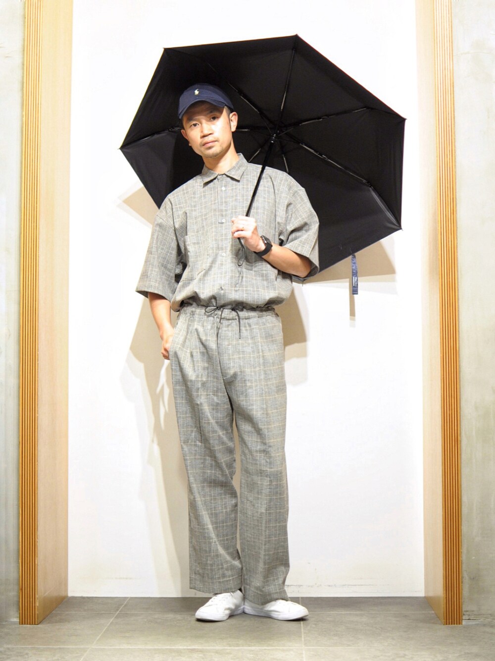 雨の日のリネンコーデ。 ちなみに、こちらの傘、荷物が多い日でも片手で操作できる【自動開閉設計‼️】すごく便利、、