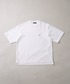 差し色の赤が決めてのホワイトコーデ。