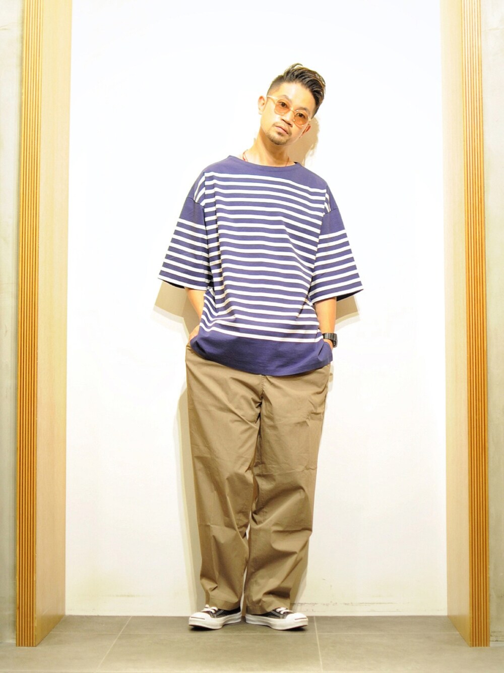 ワイドシルエットなボーダーコーデ。