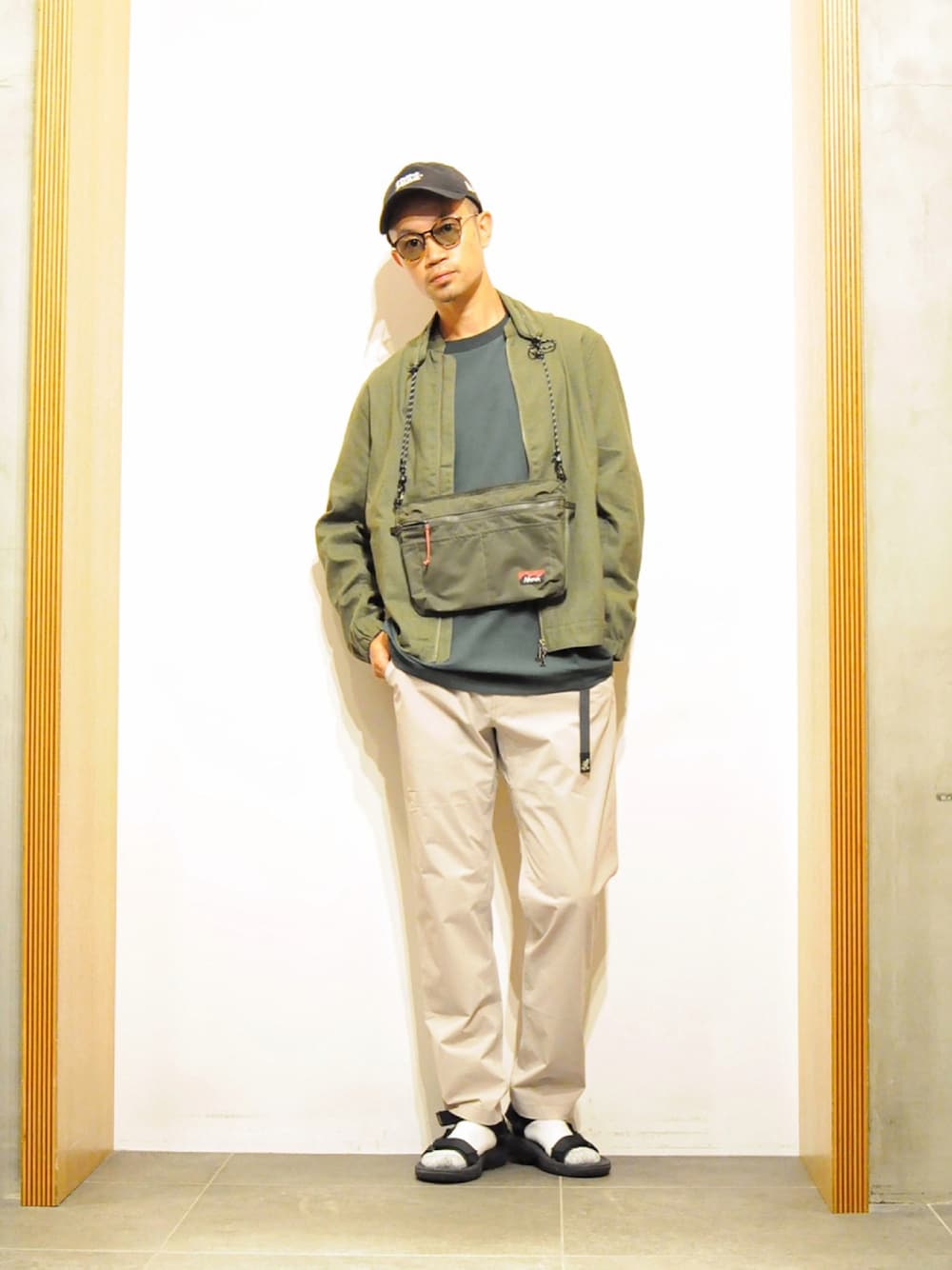 KakeruMayama(真山走)(DOORS 札幌ステラプレイス)のショルダーバッグ「NANGA TAKIBI SACOCHE」を使ったコーディネート