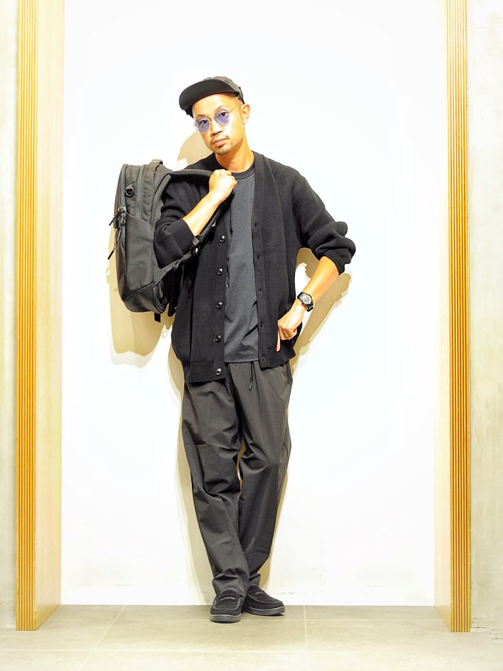 オールブラックのカーディガンスタイル!