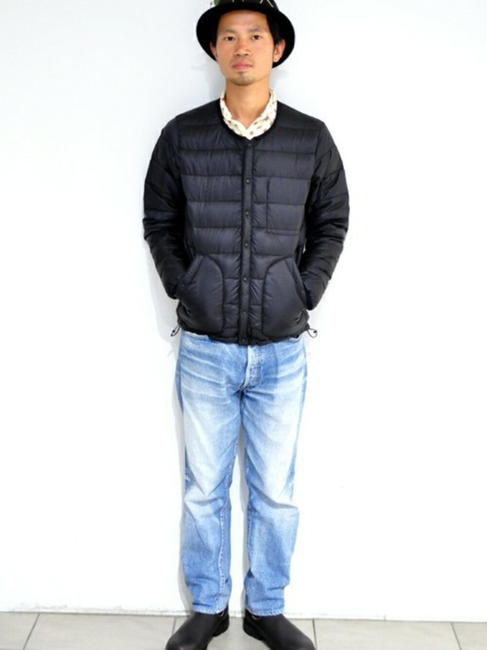 KakeruMayama(真山走)(DOORS 札幌ステラプレイス)のダウンジャケット/コート「NANGA×URiD INNER DOWN CARDIGAN SOLID」を使ったコーディネート