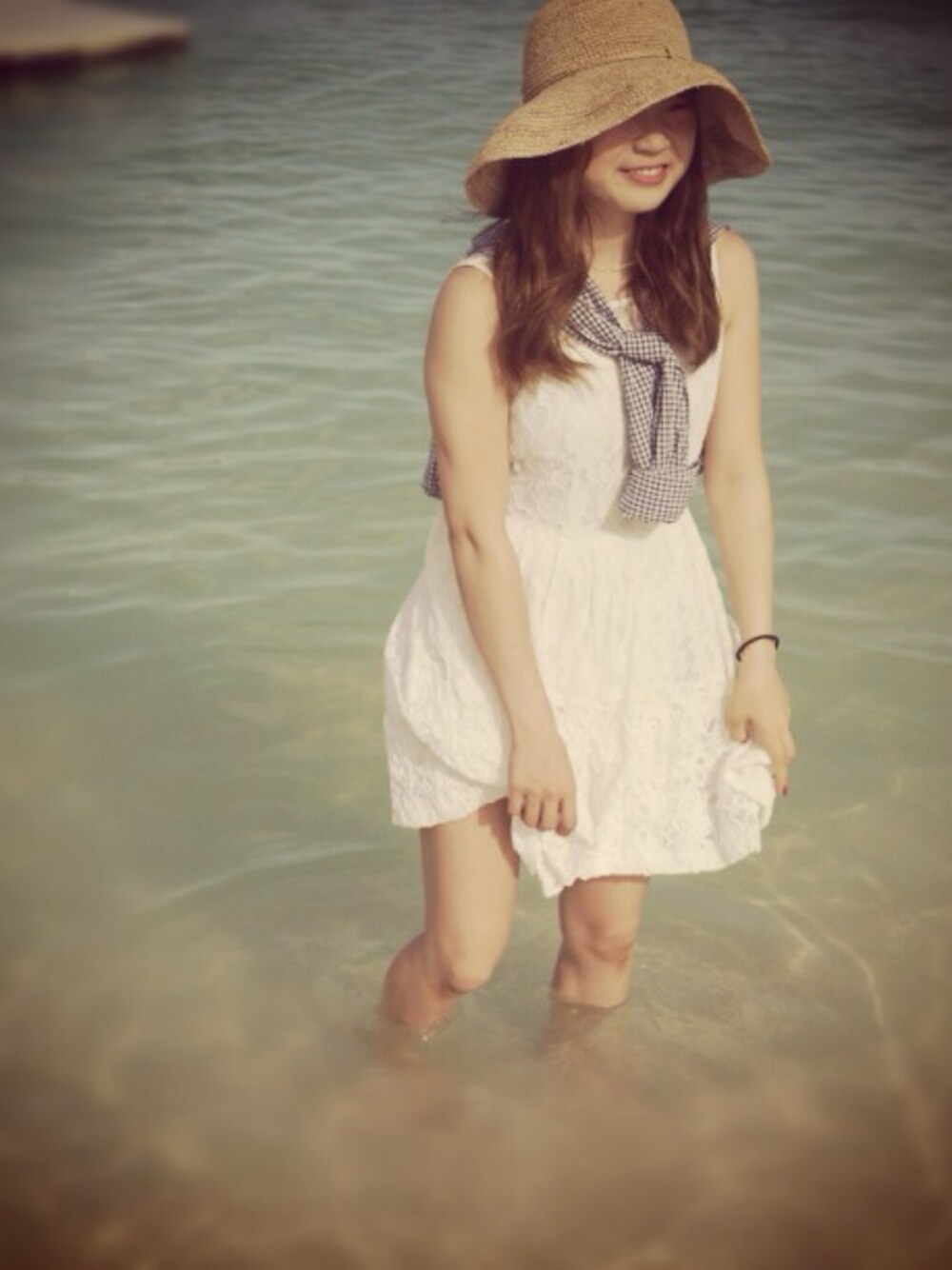 初コーデ公開!! 沖縄の海に行った時のコーデ♡ ワンピース:dazzlin シャツ:LOWRYS FARM 麦わら帽子:no brand